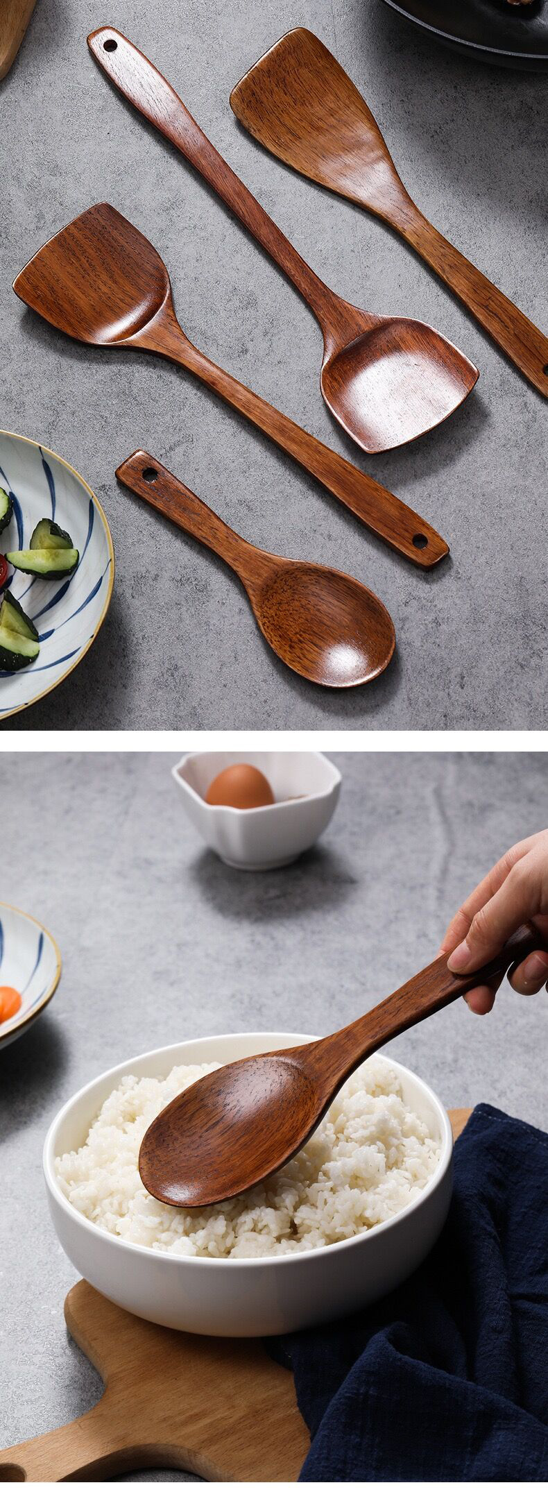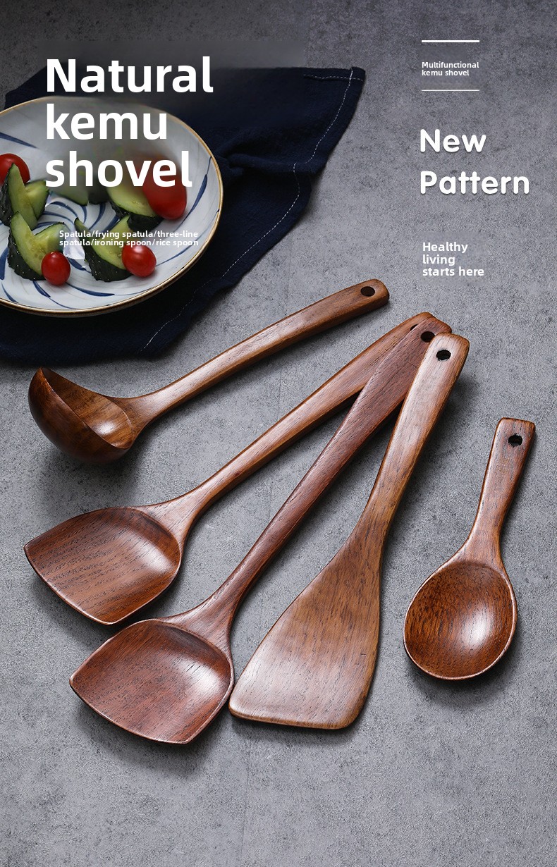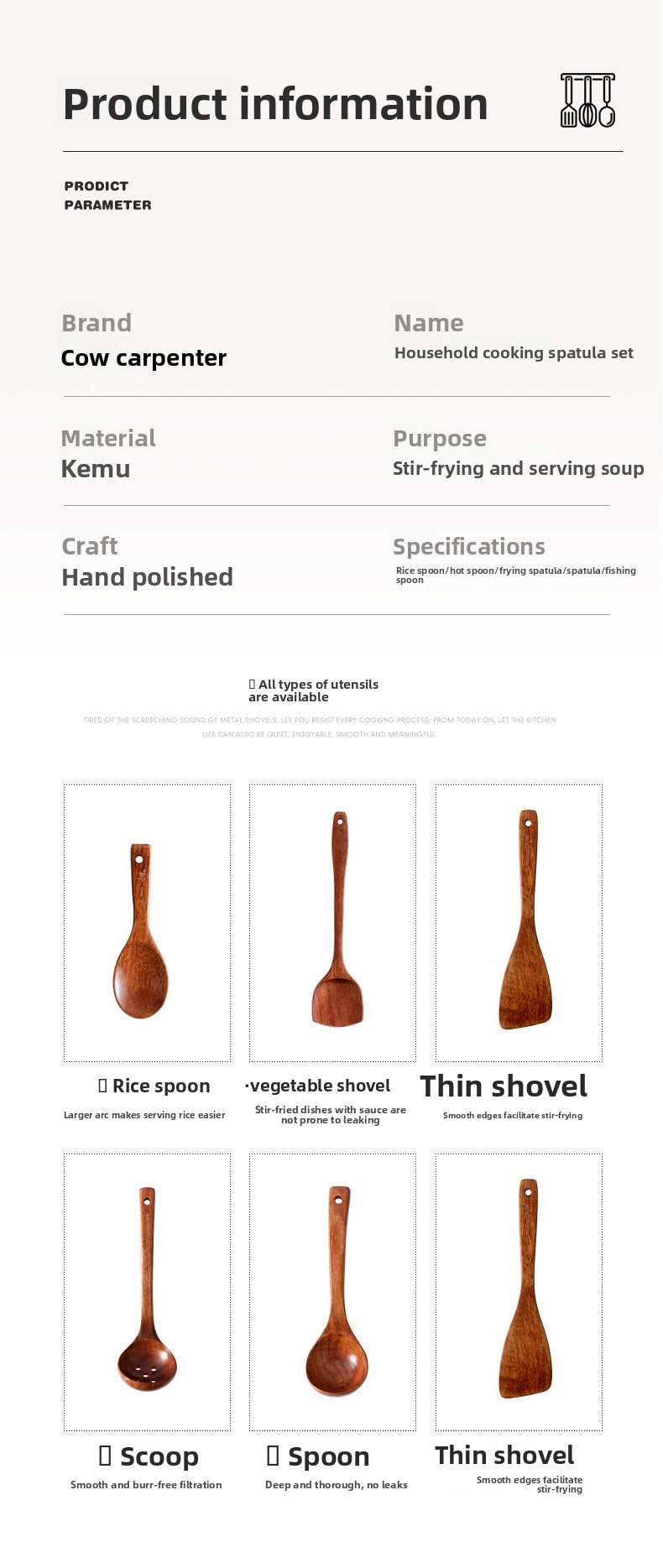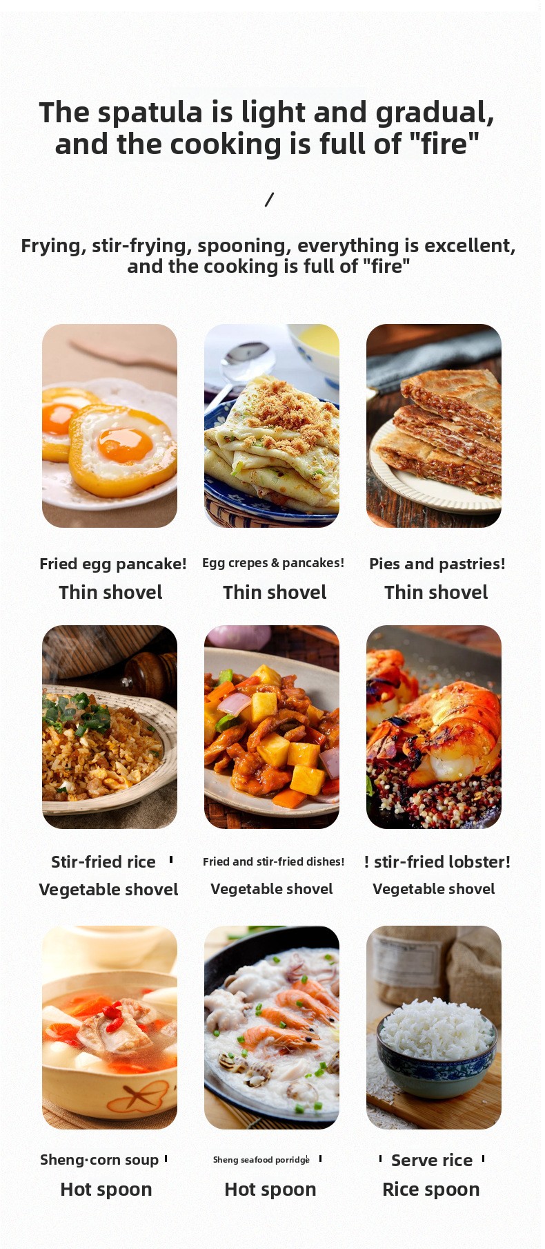 Five-piece set includes: large spatula, inclined spatula, straight-handle spoon, curved-handle spoon, deep rice